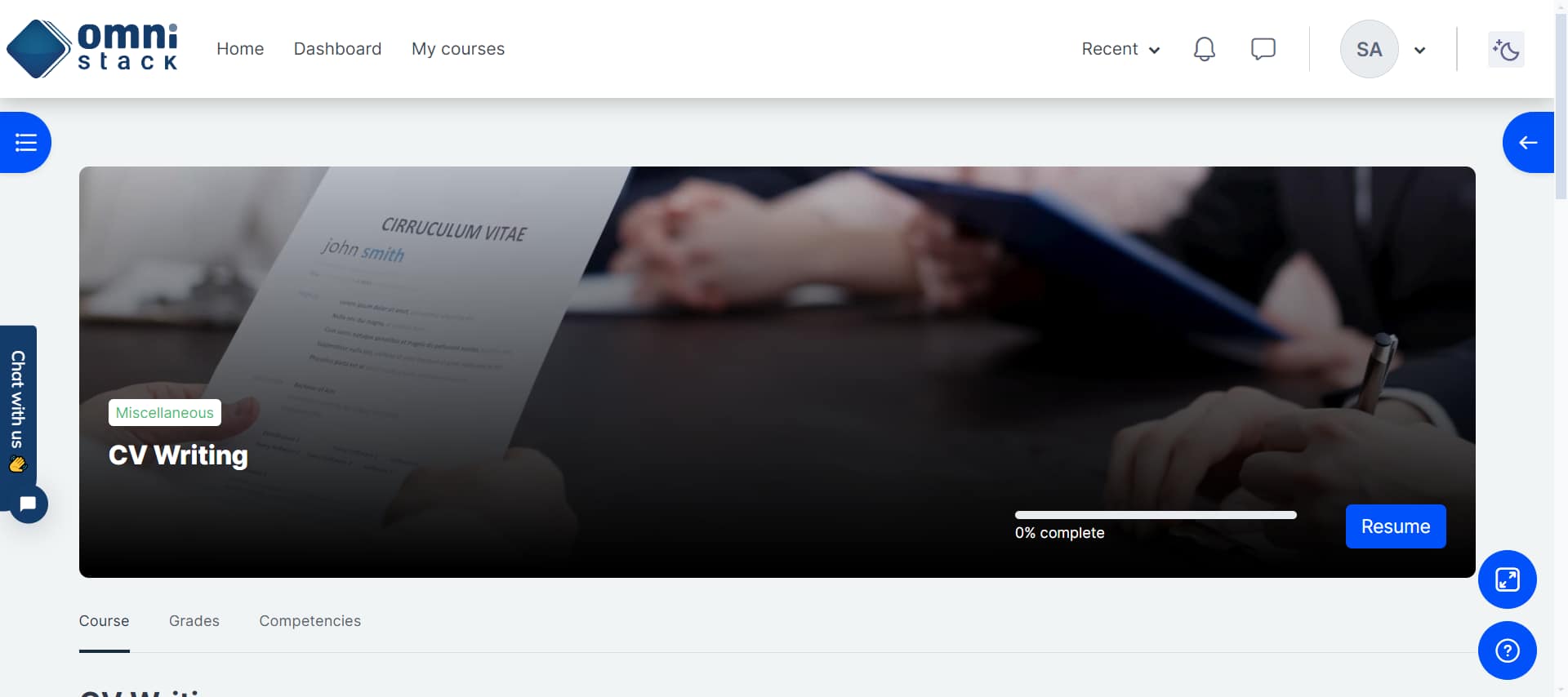 This will bring you through to the course page on the OmniStack eLearning Platform. If this is the first time viewing the course you will be shown a tour for OmniStack courses. If you wish to view the tour again click on ‘Reset user tour on this page’ in the footer (bottom section) of this page.